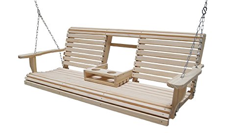 - This Rollback Wooden Porch Swings have a flip-down console in the middle to place your drinks on! Our swings are heavily constructed with slats that are 1 inch thick and 1 3/4 inches wide routered (no sharp edges). Each slat is finish sanded on all sides and ends for your safety and comfort .