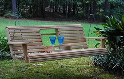 6 Feet Ft FLIP CUP HOLDER CONSOLE Cypress Lumber ROLL BACK PORCH SWING made from Rot-resistant Cypress Eternal Wood Made in the USA - Green Furniture - GO GREEN