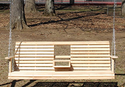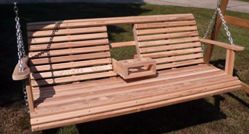 800 Lbs Weight Limit Cypress 5 Feet Flip CUP Holder Extra Heavy Duty Roll Back Porch Swing with Hanging Chains Made in USA Rot-resistant and Eternal Wood