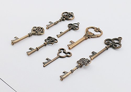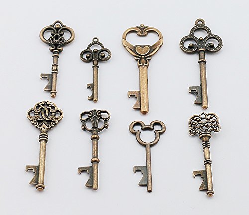 8pcs Assorted Bottle Openers Copper Key Shaped Wedding Party Favors Antique Rustic Decoration