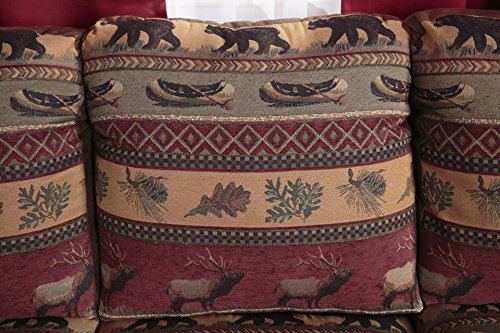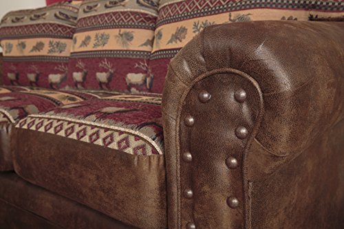 Carry the warmth and comfort of a Sierra Mountain Lodge into your home. Quality development, featuring strong wood frames and sound wood legs, assures many years of enjoyment. Lodge-inspired tapestry, coupled with lovely nail head accents, spice up the rustic appeal of this loveseat. Soft, but supportive, cushions are filled with high-density foam and a layer of fiber wrap. This is a excellent loveseat for your den or living area.