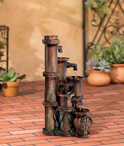 The Aqueduct industrial fashion outdoor floor fountain will include character and a dramatic, rustic appear to you porch or patio. The layout is crafted to resemble rustic pipes, with four open spouts that send water to basin beneath every single. The outcome is a handsome tiered fountain design and style that is certain to provide the all-natural ambience of flowing water. Industrial fashion outdoor floor fountain. Rustic pipes design. Rusty finish. Light-weight resin construction. Consists of pump and 9.eight-foot cord. Rated for outside use. 24\" large. 12 1/four\" wide. 8\" deep. Weighs eleven lbs.