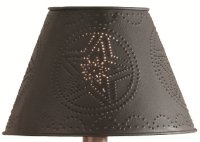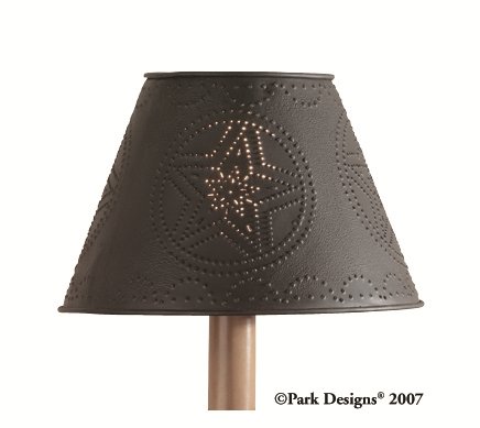 Black Star Punched Tin 6\" Lamp Shade 6\" across at the bottom, four-one/two\" Tall, and three\" diameter at the top. This is a candle clip shade.Priced and sold individually. Designed and produced by Park Patterns.