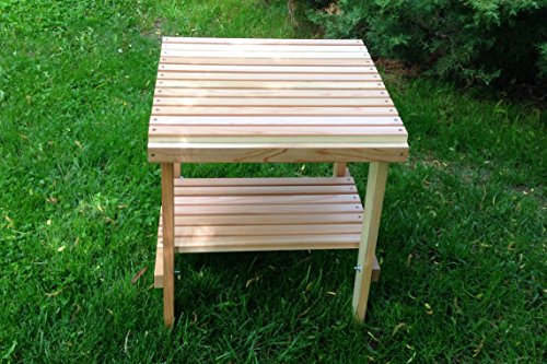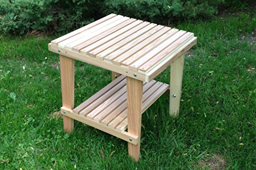 Our Western Red Cedar Side Table compliments our gliders & Adirondack chairs. This classic all-natural wood side table is 23\" tall x 21\" wide x 23\" deep - a extremely beneficial, yet compact table dimension. Our table comes with a reduce shelf for stability, plus generates a great storage area. We use the exact same cedar slats for our table top, which makes it possible for this table to match our products. Our lawn & backyard furniture is shipped partially assembled, with easy to follow guidelines. Our patio furnishings merchandise are created from all-natural tight knotty Western Red Cedar with non-staining hardware. Cedar is light-weight, dimensionally steady, and naturally resistant to splitting, cupping, and warping. Cedar offers our patio furnishings strength, elegance & natural resistance to the elements. We offer you a comfy 4\' & 5\' gliders and a dual seat 6\' settee glider, a single seat 2\' wide glider & stained gliders as properly. We also have obtainable swings. Every piece is prepared for staining, clear finish or simply depart normal. An oil or clear finish with UV light protection will carry out the elegance of the grain and a bit of red tinges in the wood. If the cedar is left organic, it will weather to an unpretentious gray. A very conventional rustic look can be done with polyurethane with UV light protection. Clear finishes will somewhat darken the wood while bringing out the red tinges discovered in the grain. Stains are effortless to apply, can come in almost any shade and do look fantastic. Stains don\'t chip or peel as can occur with paint. You ought to apply a finish that will waterproof the wood, and avoid water spots & stains from ruining the look of the wood. Please consult your neighborhood paint expert. Some additional sanding could be necessary, depending on your tastes and the finish that you want to apply. We ship by UPS ground only inside of the Continental US - we don\'t ship to Alaska, Hawaii nor outdoors the United States. Shipping is extra to all furniture orders.