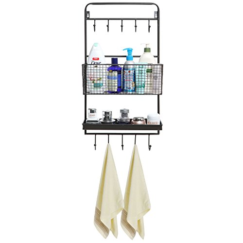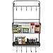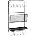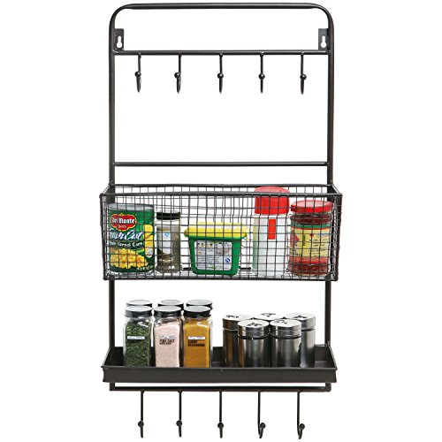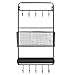 Country Rustic All-in-1 Wall Mounted Black Metal Wire Kitchen Spice Rack & Cookware Hanger / Entryway Mail Sorter Basket & Coat Hooks / Bathroom Toiletries Bin & Towel Hanger