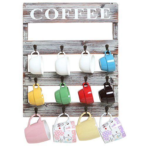 - Features a total of 12 metal hooks to hold your collection of coffee mugs as well as other items like keys or cooking utensils.
