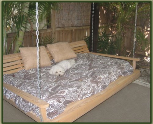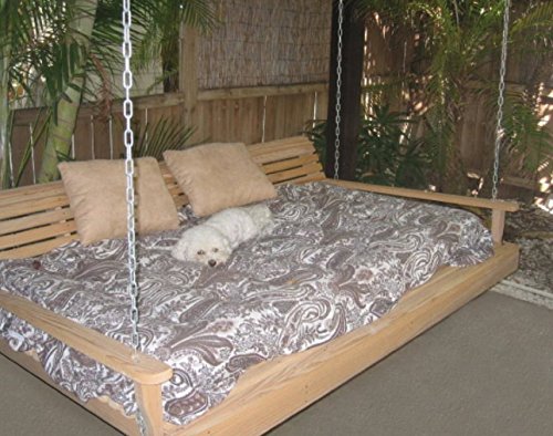 - This beautiful 6 ft. bed swing is built from Louisiana cypress and features 1 inch thick x 1 3/4 inch wide cypress slats, routered (no sharp edges) and finish sanded on all sides for your safety and comfort.