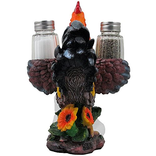 Include a flavorful dash of nation kitchen charm to your dinner table with this proud rooster salt and pepper shaker set! A bright red rooster figurine accented with colorful sunflowers keeps your spices inside straightforward reach. Colorful farm type is made basic with this clever tabletop companion! 3 piece set consists of a single decorative rooster salt and pepper holder sculpture and two glass s & p shakers.