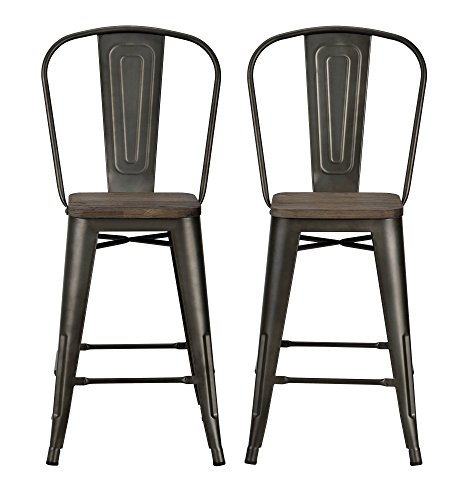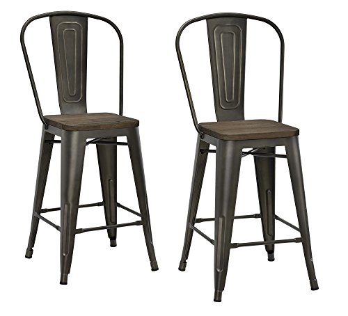 The Luxor 24\" Metal Counter Stool with a wood seating surface from DHP is extremely fashioned with a distressed finish and antique metal layout. This urban counter stool is a classic statement piece, creating it a ideal dining and conversation seat.