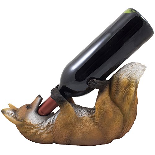 Drinking Sly Fox Wine Bottle Holder Statue in Rustic Lodge Statues and Hunting Cabin Decor Sculptures As Decorative Bar or Countertop Wine Racks & Display Stands As Wildlife Animal Father's Day Gifts for Hunters