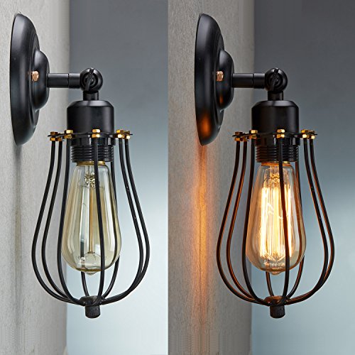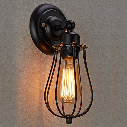 Ecopower Vintage Style Industrial Black Mini Wire Cage Wall Sconce