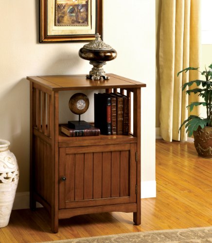 Furniture of America Pompey Mission Style 1-Door Side Table, Antique Oak Finish