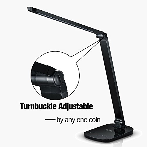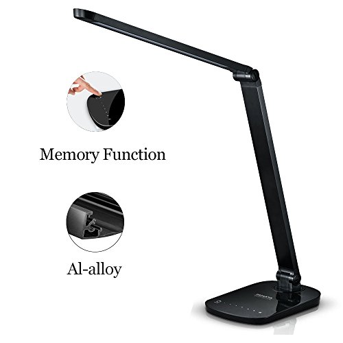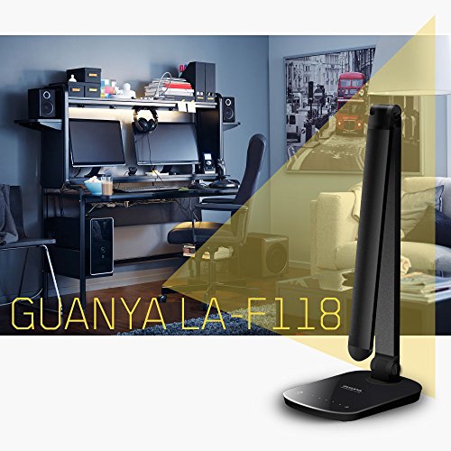 Guanya F118 Dimmable LED Desk Lamp Aluminum Alloy Lamp Arm,Memory Function,Eye-caring,Energy Efficient,7-Level Dimmer,Touch-sensitive Control Panel ,Matte Black
