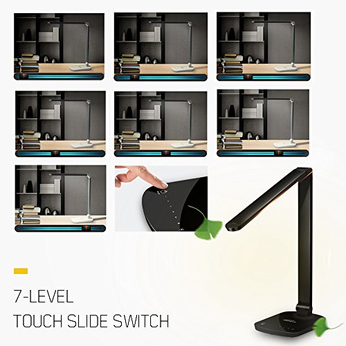 Memory Function: Come back to your personal choice brightness when you turn it on next time. High Quality & Modern Looking: made of high-strength ABS plastic and aluminum material Five colors(Black Blue Green Gold Silver): Fashion colors,simple and natural,eye care,exquisite workmanship Highly sensitive touch dimmer - humanized design , Slide your finger to adjust 7 level brightness and operation is simple Folding design - make it a perfect space saver and fully adjustable light direction AdjustaUltra thin lamp head and aluminum metal rod, visually elegant. Adjustable arm for easy directing of light Light source - This desk lamps use 35 LED SMD LED lamp beads with 2835 specifications of the high quality high brightness. LED light bulb - Lower power consumption & Long life span 50,000 hrs Eye-caring reading lamp =health - High quality LEDs Smooth and uniform lighting, no ghosting, no glaring. non-Flickering natural light protects eyes