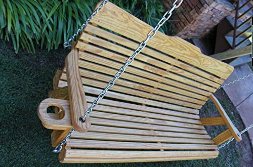- Roll Back seating is comfortable and relaxing. Two side cupholders let you enjoy your drinks while swinging. CEDAR STAIN GIVES IT A UNIQUE LOOK.