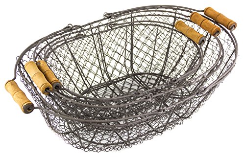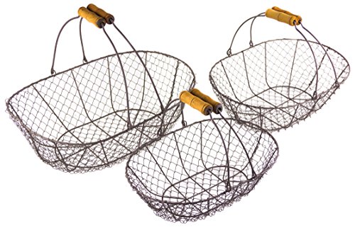 Harvest Rustic Wire Country Style Basket with Handles, Set of 3