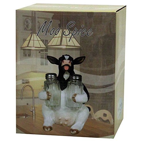 Boring tabletop salt and pepper shakers better \"mooooo-ve\" on above and make space for this happy-go-lucky Holstein! An \"udderly\" adorable decorative cow figurine holds a pair of salt & pepper shakers bringing a pleasing hint of casual nation charm to your farm fashion family suppers, often maintaining a generous serving of your preferred spices inside easy attain. Three piece set includes a single Holstein cow sculpture as the salt and pepper shaker holder and two glass salt & pepper shakers. Can make a fantastic Christmas gift concept for farmers and collectors of country kitchen décor.