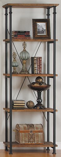 Blending the seem of vintage industrial with present day layout is the Factory Collection. Burnished rustic wood planks are framed with wrought iron design metal supports in this stylish bookcase or shelf.