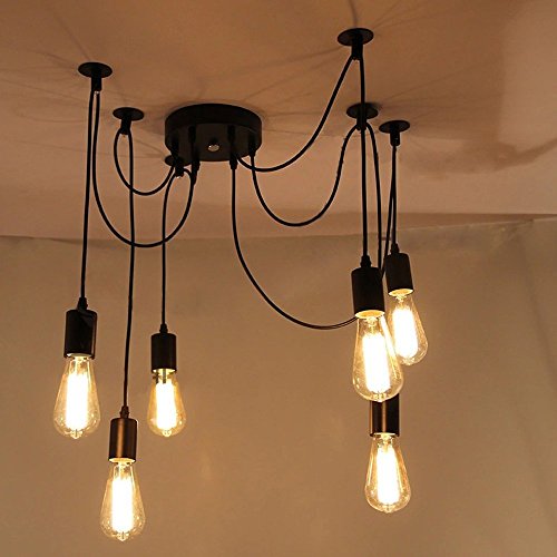 Attributes: Materials: The main portion of this chandelier is manufactured of iron, and the wires is braided. Finish: Its finish is painted, color is black. Solution Dimensions: Every wire is 59 inch, can adjusted droop length and modeling by DIY. The diameter of canopy is 7.9inch. Voltage Frequency: Ideal for Uk, Canada US, 110V-240V Power: There are six E26 bulb sockets in total, the optimum compatible wattage bulb is 60W (bulbs NOT included) Applicable Bulb Variety: You can use incandescent bulbs, significantly less than 5W CFLs and LED bulbs, Edison bulb is far more ideal for the design of the lamp. Advised Space Size: up to 50 square meters Package deal integrated: one X Ceiling Lamp Set with six heads (Bulb is not incorporated) one X Other installation resources