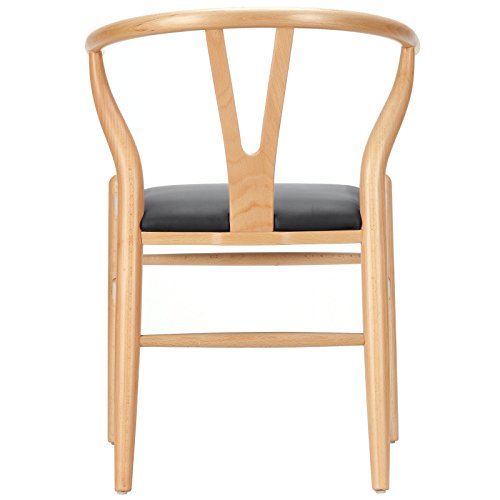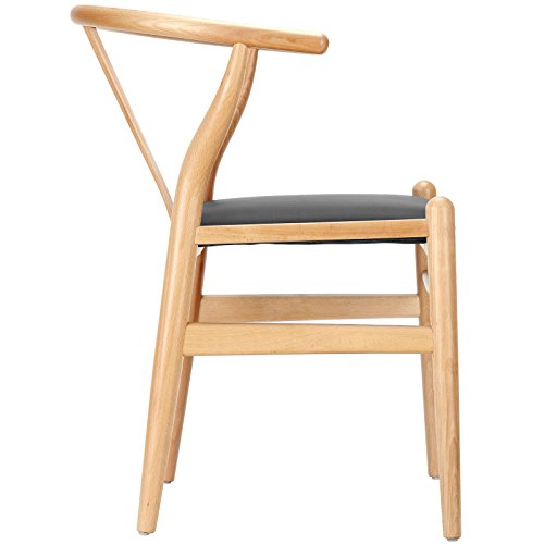 LexMod Hans Wegner Style Wishbone "Y" Chair with Black Vinyl Seat