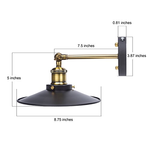 Specification: Fashion Name: Wall Mount Light Sconces Aged Steel Finished Item Bodyweight : two.two lbs Diameter: 8.3\" Length: 5.9\" Colour: Black Design : Metal wall Light Material: Metal Electrical power Source: hardwire Bulb Base: E26 (Not Contain the Bulb) Wattage: MAX 60 watts Bundle Include: one x 1-light wall sconces (Not like the Bulb)