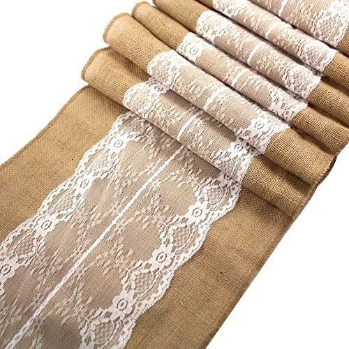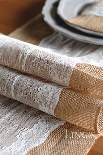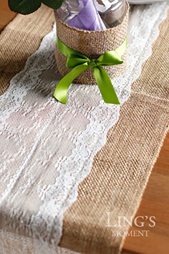 Ling's Bridal 12"x108" Burlap Lace Hessian Table Runner Jute Wedding Party Table Decoration (1) by Ling's Bridal