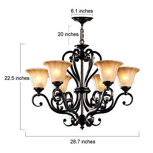 Components : ironSize : 27.95 inches ( Diameter ) 22.05 inches ( Height )Number of Bulbs : 6 (Bulbs Not Integrated)Base Sort : E26Voltage : 110VSuitable Spot : 15-20 square metersSuitable Areas : Indoor Use only residing area , dining room , examine , restaurant , bar , etc .Notices : WE Recommend Installation BY A LICENSED ELECTRICIAN .This fixture has been rated for up to 60-watt optimum Type A bulb (not included).one. For a risk-free and safe installation, please guarantee that the electrical box to which this fixture will be mounted is appropriately attached to a structural member of the constructing.2. All wires are linked. When unpacking, be mindful not to pull with wires as a undesirable connection may outcome.3. Do not connect electrical energy right up until your fixture is entirely assembled. To reduce the threat of fire, electrical shock, or personal damage, usually turn off and unplug fixture and permit it to cool prior to changing light bulb. Do not touch bulb when fixture is turned on or appear right at lit bulb. Preserve flammable components away from lit bulb.