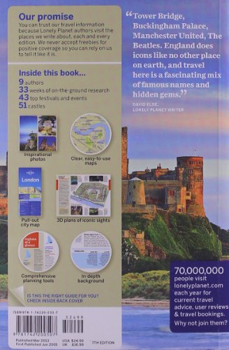 Lonely Planet: The world\'s leading travel manual publisherLonely Planet England is your passport to all the most related and up-to-date tips on what to see, what to skip, and what hidden discoveries await you. Seek out a manual lead you through the Tower of London, ponder the mysteries of Stonehenge, or sit back in a centuries-previous pub with a classic beer all with your trusted travel companion. Get to the heart of England and get started your journey now!Within Lonely Planet England Travel Guidebook: Colour maps and images throughout Highlights and itineraries display you the simplest way to tailor your trip to your own personalized requirements and interests Insider suggestions conserve you time and money and aid you get around like a nearby, staying away from crowds and problems spots Crucial information at your fingertips - like hrs of operation, telephone numbers, websites, transit tips, and costs Honest testimonials for all budgets - including consuming, sleeping, sight-seeing, going out, shopping, and hidden gems that most guidebooks miss Cultural insights give you a richer and much more rewarding travel expertise - which includes historical past, artwork, literature, cinema, music, architecture, politics, landscapes, foods, drink, and far more Totally free, convenient pull-out London map (included in print version), plus above 95 colour neighborhood maps Beneficial features - such as Walking Excursions, Travel with Youngsters, and Month-by-Month (annual festival calendar Coverage of Newcastle, Lake District, Cumbria, Yorkshire, Manchester, Liverpool, Birmingham, Midlands, the Marches, Nottingham, Cambridge, East Anglia, Oxford, Costwolds, Wessex, London, Canterbury, Devon, Cornwall, and moreThe Ideal Decision: Lonely Planet England, our most comprehensive manual to England, is ideal for people arranging to the two investigate the prime sights and get the road less travelled. Seeking for a guidebook focused on London? Check out out Lonely Planet\'s London guide for a complete look at all the city has to supply, Lonely Planet\'s Uncover London, a photo-wealthy guidebook to the city\'s most common points of interest, or Lonely Planet\'s Pocket London, a helpful-sized guide centered on the can\'t-miss sights for a swift trip. Searching for far more substantial coverage? Check out Lonely Planet\'s Wonderful Britain for a extensive search at all the region has to provide, or Learn Great Britain, a photo-rich guidebook to the region\'s most common sights.Authors: Written and researched by Lonely Planet, David Else, Oliver Berry, Fionn Davenport, Marc Di Duca, Belinda Dixon, Damian Harper, Anna Kaminski, Catherine Le Nevez, and Neil Wilson.About Lonely Planet: Started out in 1973, Lonely Planet has become the world\'s foremost travel guidebook publisher with guidebooks to every single destination on the planet, as effectively as an award-winning internet site, a suite of mobile and digital travel goods, and a dedicated traveller local community. Lonely Planet\'s mission is to enable curious travellers to expertise the world and to genuinely get to the heart of the areas they uncover themselves in.