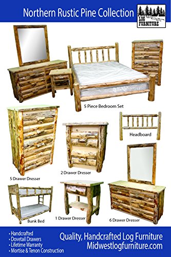Midwest Log Furniture\'s Northern Rustic Pine collection is hand picked and kiln dried to preserve the integrity of the wood. Northern Pine is naturally insect and weather resistant making this a great wood to finish or leave organic. Our Rustic assortment is rough sanded and easily completed. Dimensions & Weights will vary based mostly on wood density and log variations Twin 43Wx48H Complete 60Wx48H Queen 60Wx48H King 82Wx48H Log Headboard Weight Twin forty lbs Complete 45 lbs Queen 50 lbs King fifty five lbs