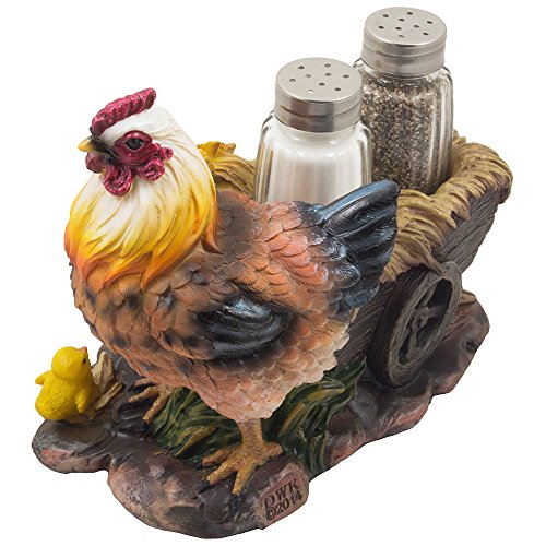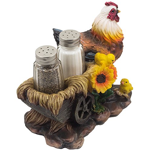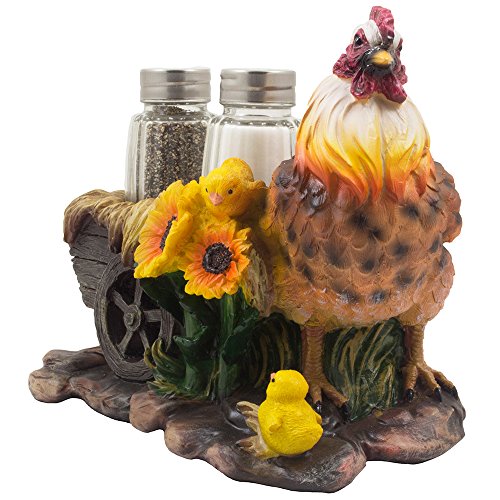 Add a splash of colour and a dose of country farm whimsy to your kitchen table with this decorative salt and pepper shaker set! A mom hen and her two chicks brighten up an previous fashioned wooden wagon hauling hay, whilst including farm fresh flavor to your meals. No rustic nation kitchen décor would be comprehensive without having this gorgeous sculpture. Tends to make a excellent Christmas present for farmers or collectors of farm animals, chickens and rooster décor. 3 piece set contains 1 decorative display stand figurine and two glass salt & pepper shakers.