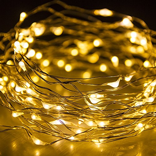 MUCH 33ft 100 LEDS Warm White Starry Lights Flash Lights Copper LED Lights Strings for Christmas Trees, Wedding, Gardens, Lawn, Patio, Parties
