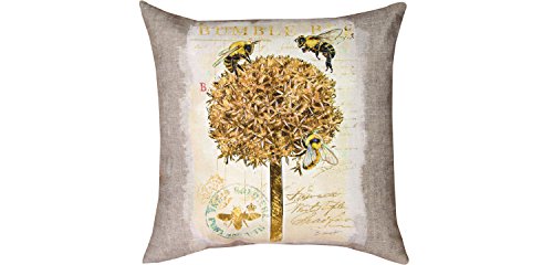 MWW Manual Indoor/Outdoor Throw Pillow, 18", Natural Life Bumble Bee