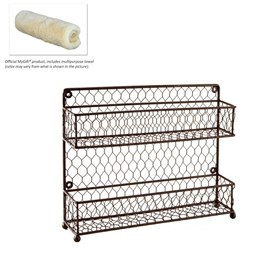 Conserve space and nonetheless see all your spices with this rustic chicken wire spice rack. Two levels let double the storage, and thanks to the ball feet and reinforced mounting rings you have your option of sitting this on the counter for a excellent decorative search or mounting it on the wall to hold it out of the way but nonetheless effortlessly accessible. Each and every tray measures twelve\" prolonged and two\" deep to hold the spice jars in.Approximate dimensions: Decrease Rack twelve\" W x 2\" D x 5.75\" H. Upper Rack 12\" W x two\" D x 3.5\" H. Overall Dimensions 12\" W x two.25\" D x 9.5\" H.Official MyGift® merchandise, involves multipurpose towel.