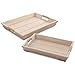 - Comes with 2 nesting trays, each with 2 handles and beige wooden surfaces.