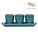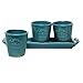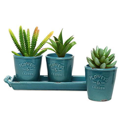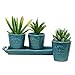 MyGift® Set of 3 Country Rustic Turquoise Ceramic Succulent Planters / Flower Pots & Handled Display Tray