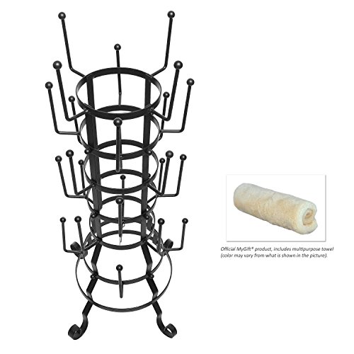 Organize and display off your assortment of mugs, cups, and glasses with this vintage-fashion mug hook rack. The sturdy metal development keeps this freestanding mug tree secure and helps make certain that all your favorite mugs and glasses will be safely stored on your counter or tabletop. Meanwhile, the 24 ball-capped metal hooks offer you with the ideal spot to hang mugs, glasses, and cups to air-dry them or to preserve them stylishly stored and inside easy attain. The vertical layout of this bottle tree assists employ otherwise-unused storage area so you can totally free up your kitchen cupboards for other products, and this mug organizer is also a ideal for recyclers who require a area to hang just-washed bottles destined for the recycling bin, crafters who require a spot to keep yarn or ribbon, or any individual who desires to carry trendy and wise storage to their property. For each organization and style for your kitchen, dining space, or other room, this metal mug organizer is the best option.**Official MyGift® solution contains multipurpose cleaning towel.**Approximate Dimensions: 25.6\" H X 10.2\" in diameter.