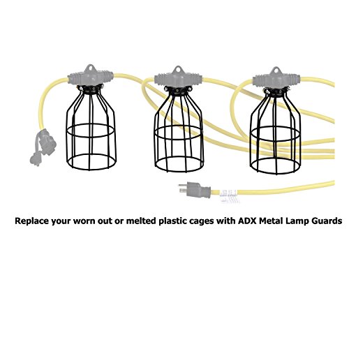 The metal lamp guard by Adamax is constructed with sixteen-gauge vinyl coated metal wiring. With its adjustable screw tightning clamp, the lamp guard fits practically all string lights, porcelain and plastic lamp holders. These metal lamp guards are also quite well-liked for decorations in urban settings especially when mixed with metal halide lights!.