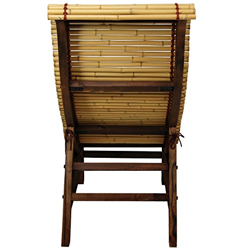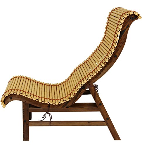 Japanese bamboo all-wood lounge chair characteristics a curved seat and back layout fitting the contours of the entire body for highest rest. Sturdy wood frame is completed in a dark stain with noticeable wood grain. Bamboo rod mat retains its organic light colour and is stitched with each other with vivid red string. Spot a pair on the deck, porch, or poolside as component of an Oriental, exotic, tropical or rustic theme. As with all outdoor furniture, storing for the duration of harsh weather for the longest item existence.