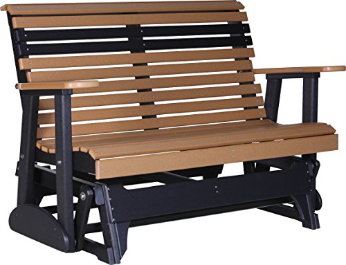 - Outdoor Polywood 4 Foot Porch Glider - Plain Rollback Design *CEDAR/BLACK* Color. Dimensions: 32" x 52" x 35" High