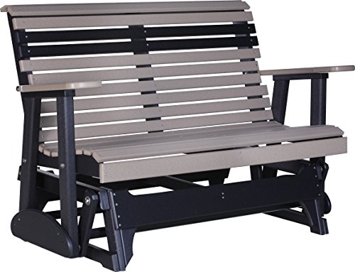 - Outdoor Polywood 4 Foot Porch Glider - Plain Rollback Design *WEATHERWOOD/BLACK* Color. Dimensions: 32" x 52" x 35" High