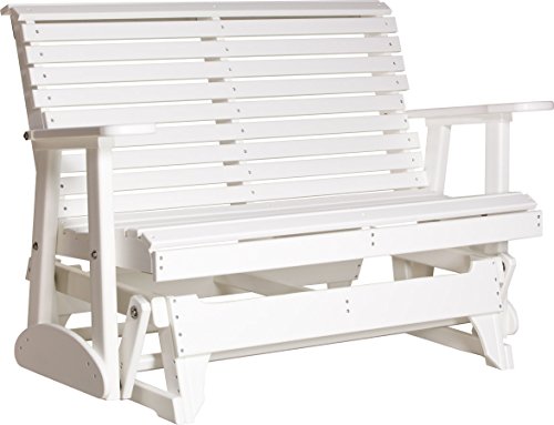 - Outdoor Polywood 4 Foot Porch Glider - Plain Rollback Design *WHITE* Color. Dimensions: 32" x 52" x 35" High