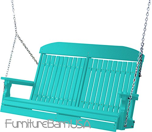 - Outdoor Polywood 4 Foot Porch Swing - Classic Highback Design *ARUBA BLUE* Color. Dimensions: 28" x 53" x 30" High