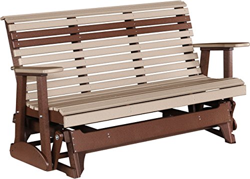 - Outdoor Polywood 5 Foot Porch Glider - Plain Rollback Design *WEATHERWOOD/CHESTNUT BROWN* Color. Dimensions: 32" x 64" x 35" High