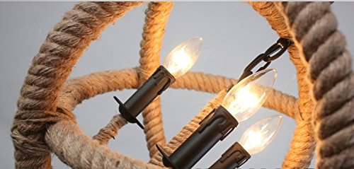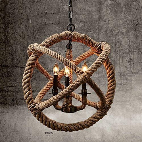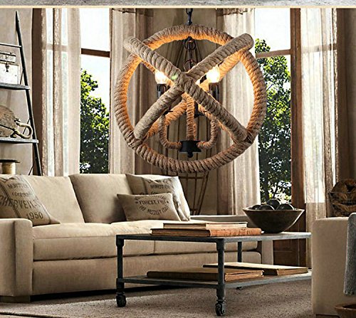 - Retro 3 Lamp Hand-weaved Hemp Rope Chandelier Retro Country Style