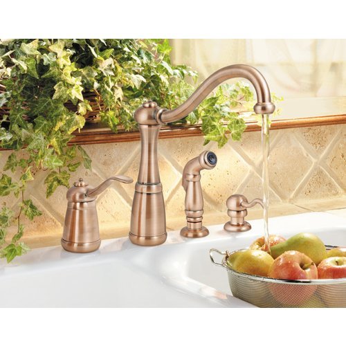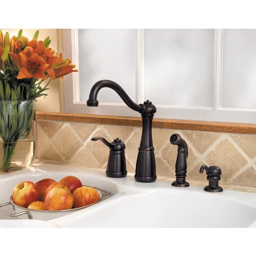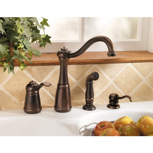 Pfister GT26-4NUU Marielle Single Handle Kitchen Faucet with Side Spray and Soap Dispenser, Rustic Bronze