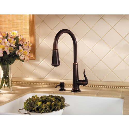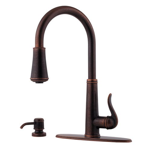 Pfister GT529-YPU GT529-YPU Ashfield 1-Handle Pull-Down Kitchen Faucet with Soap Dispenser, Rustic Bronze