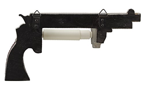 Maintain your decor game locked and loaded with Resin Pistol Toilet Paper Holder. Boasting a textured grip, a silver finish, and straightforward flourishing information, this toilet paper holder will place the finishing touches in your bathroom. Install it and bask in its cute charm! Dimensions: Length: five 3/four\" Width: eleven\" Projection: 3 1/two\" Hanging Hardware: two - Triangle Rings (five five/16\" Apart from Center to Center)