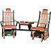 - First image shows cedar primary color with green trim option. Please refer to second image for color swatches. Your family will enjoy relaxing on this comfortable, sturdy, and durable furniture for years to come! The seats of the settee operate as individual gliders. The connecting table functions as a removable insert. Umbrella holes come standard in the table. Please let us know if you prefer the table without the umbrella hole.