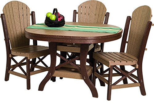 Poly Lumber Patio Furniture Set Including 1 Oval Table (48") and 4 Side Chairs in Weathered Wood & Green - Amish Made in USA