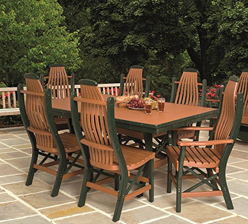 - First image shows cedar primary color with green trim option. See second image for color swatches. Your family will enjoy gathering around this comfortable and durable table set for years! Umbrella holes come standard in the table. Please let us know if you prefer the table without the umbrella hole. This listing includes (1) 60" Rectangular Table, (2) Bentwood Style Side Chairs without Arms, and (2) Bentwood Style Captain Chairs with Arms. ADDITIONAL CHAIRS PICTURED ARE SOLD SEPARATELY.